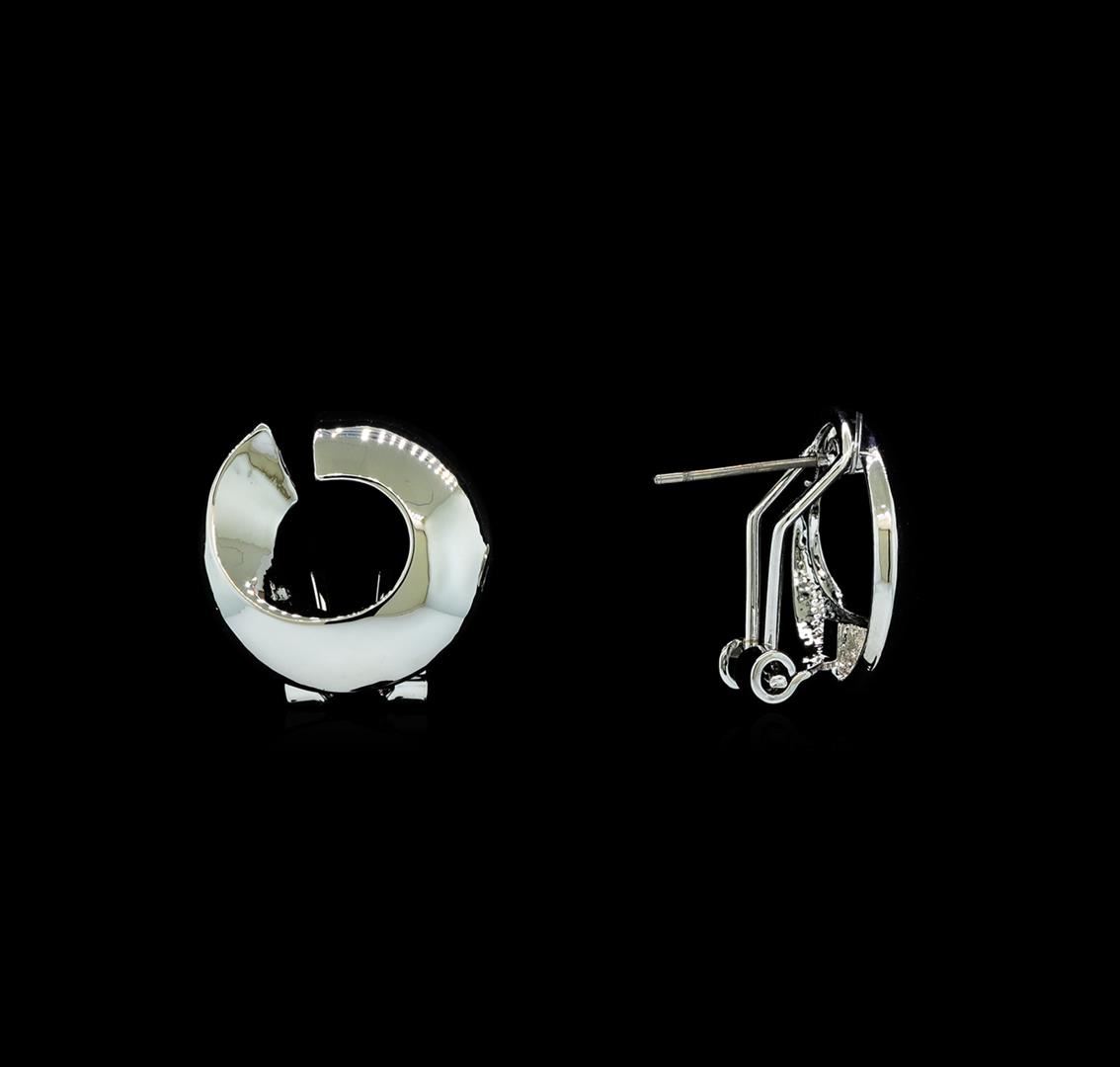 High end designer jewelry. Open Circle Design Earrings - Rhodium Plated. Rhodium Plated French Clip. Silver. 1inch.