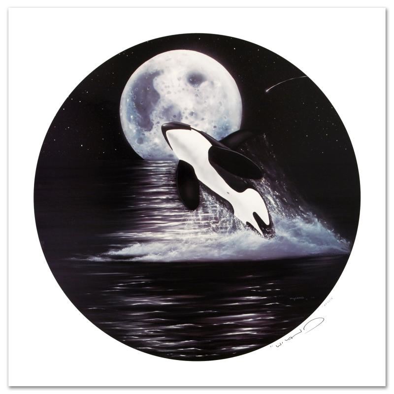 "Orca Moon" is a limited edition mixed media on paper, AP numbered and hand signed by Wyland! Includes Certificate of Authenticity! Measures approx. 22" x 22" (border), 19" x 19" (image).