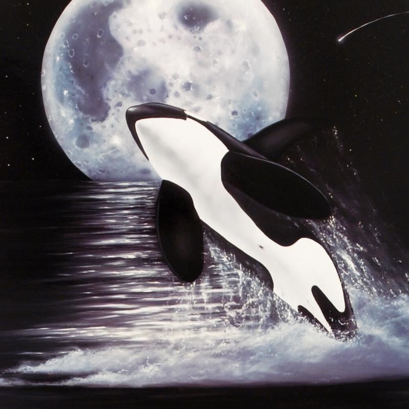 "Orca Moon" is a limited edition mixed media on paper, AP numbered and hand signed by Wyland! Includes Certificate of Authenticity! Measures approx. 22" x 22" (border), 19" x 19" (image).