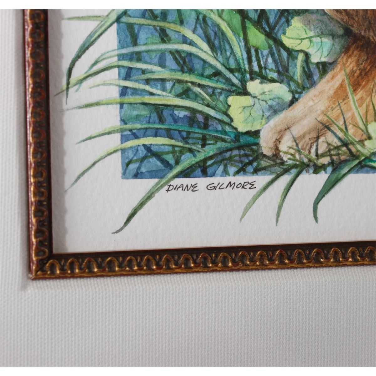 An original illustration titled Rabbit by Diane Gilmore. Framed and ready to hang. Measures approximately 24 x 24 inches (frame).