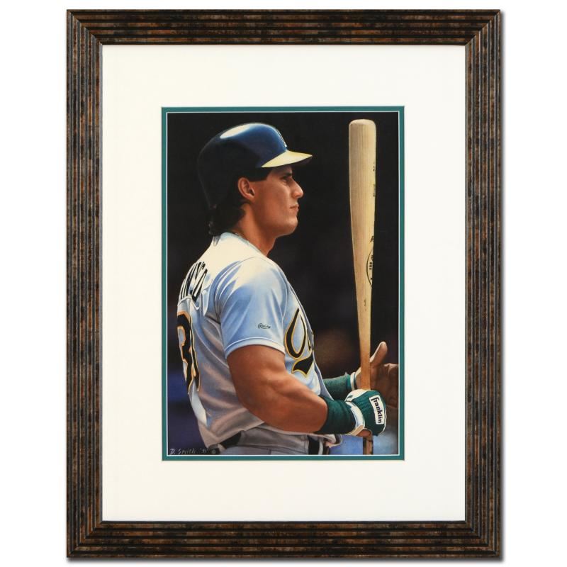 "Jose Canseco" is an original watercolor painting on paper by Daniel M. Smith, hand signed and dated (1991) by the artist! This piece comes custom framed! Includes Certificate of Authenticity! Measures approx. 22" x 27.5" (with frame), 11.5" x 17" (image).