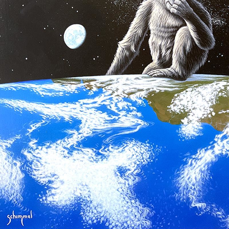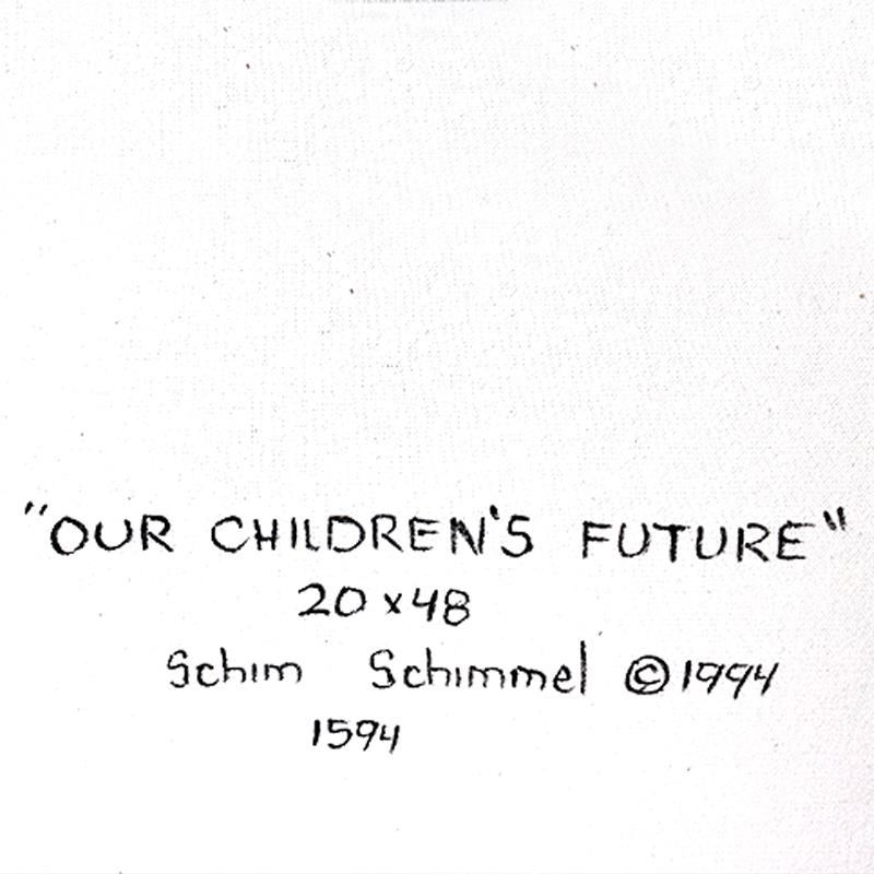 Our Children's Future By Schimmel Original. "Our Children's Future" is an original acrylic painting on stretched canvas by William Schimmel, hand signed by the artist. This piece is titled and dated 1994 inverso. Includes Letter of Authenticity. Measures approx. 48" x 24" (image).