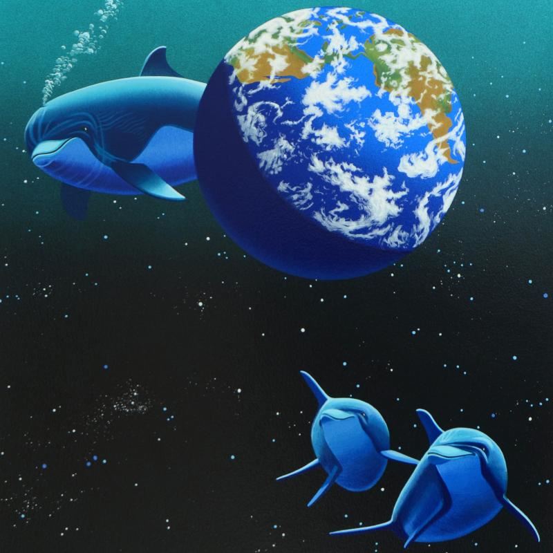 "Our Home Too II (Dolphin)" is a limited edition serigraph on paper by William Schimmel, numbered and hand signed by the artist! Includes Certificate of Authenticity! Measures approx. 28" x 34" (with border), 22" x 28" (image).