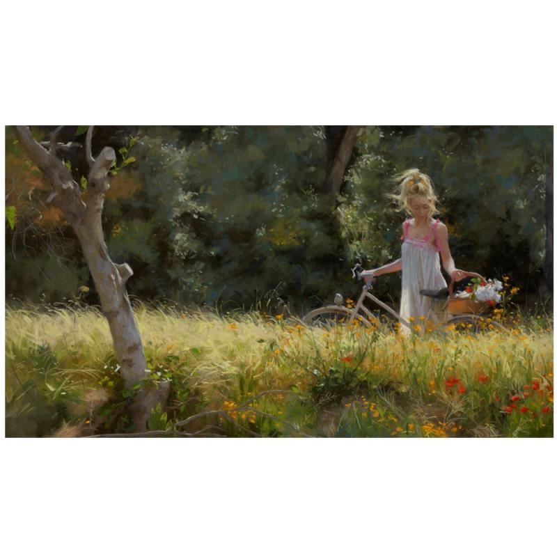 "Outing in the Countryside" is a limited edition giclee on canvas by Vicente Romero. The piece is hand signed, numbered, and come with a certificate of authenticity. Measures approximately 15" x 28".