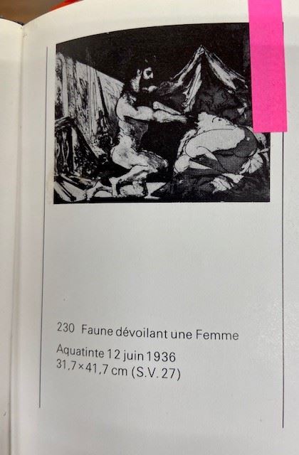 Picasso's "Faune devoilant une Femme" is printed on soft fine art paper this delicate 18x13" VOLLARD etching from 1936 is Estate signed but numbered 168/300 in pencil Pablo Picasso created the Suite Vollard between 1930 and 1939 in honor of his friend and art dealer, Ambroise Vollard. The suite is comprised of 100 etchings, illustrating Picasso's most famous themes. In 1990, the Picasso family authorized an unprecedented print recreation, faithfully rendered, of these exceptional artworks. This authorized recreation, produced in a limited edition of 300, was published by the prestigious German Museum, Stadtichen Mulheim an der Ruhr. The paper used for this edition is the same rare, high quality paper used by Picasso to print the Suite Vollard during the 1930's.