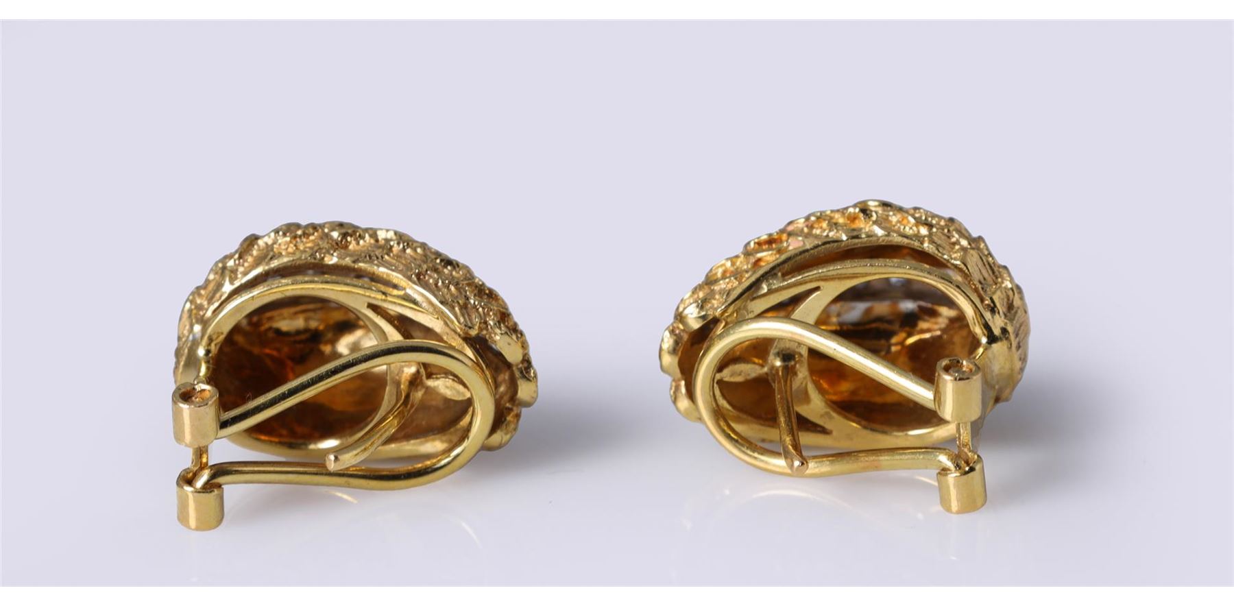 Pair Italian 18K Gold & Diamond Earrings containing twelve round brilliant cut diamonds weighing approximately 0.08 cts. Total weight of 11.6 gm. Estimated retail value $2,800.
