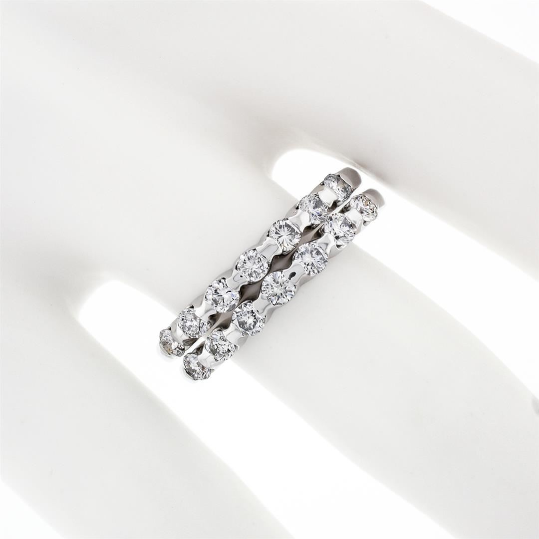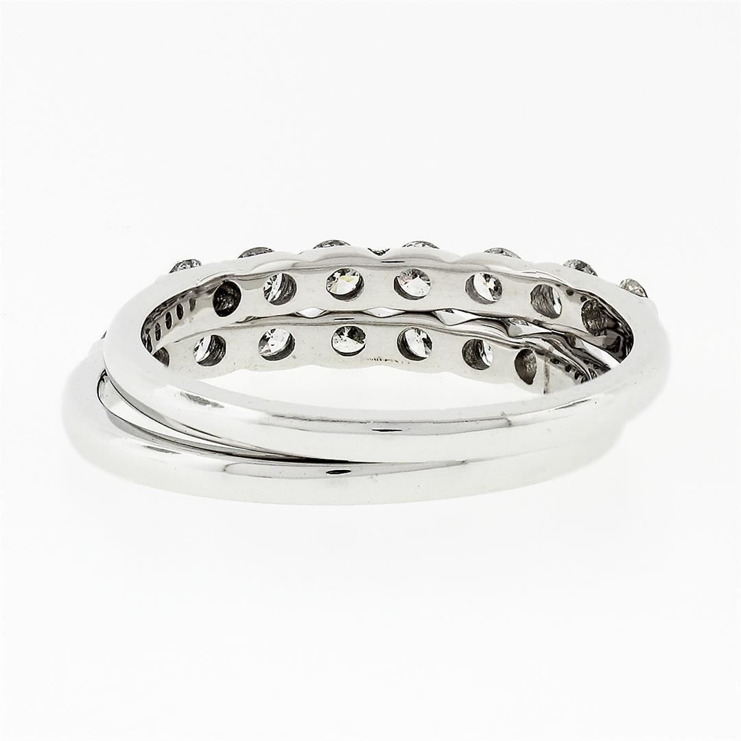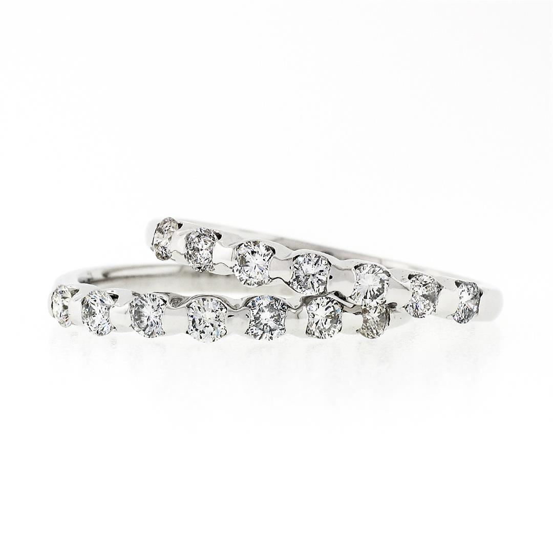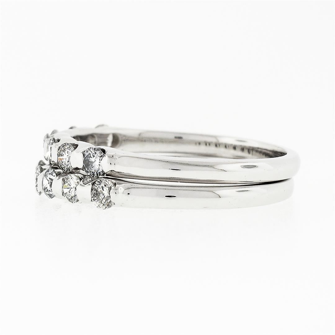 A pair of solid 14k white gold stack band rings, with 14 round brilliant cut natural diamonds (G/H - SI1/SI2 ; 1.00ctw). The ring is size 9.0, weighs a total of 5.03 grams, and measures 5.38mm wide together .