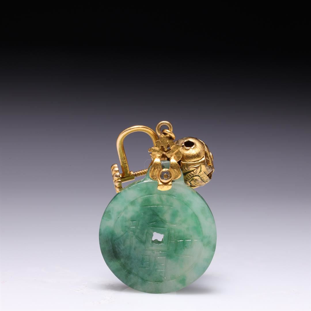 Pair of 14k Yellow Gold & Jadeite Earrings. Total weight is 10.7 gm. Estimated retail value $800.