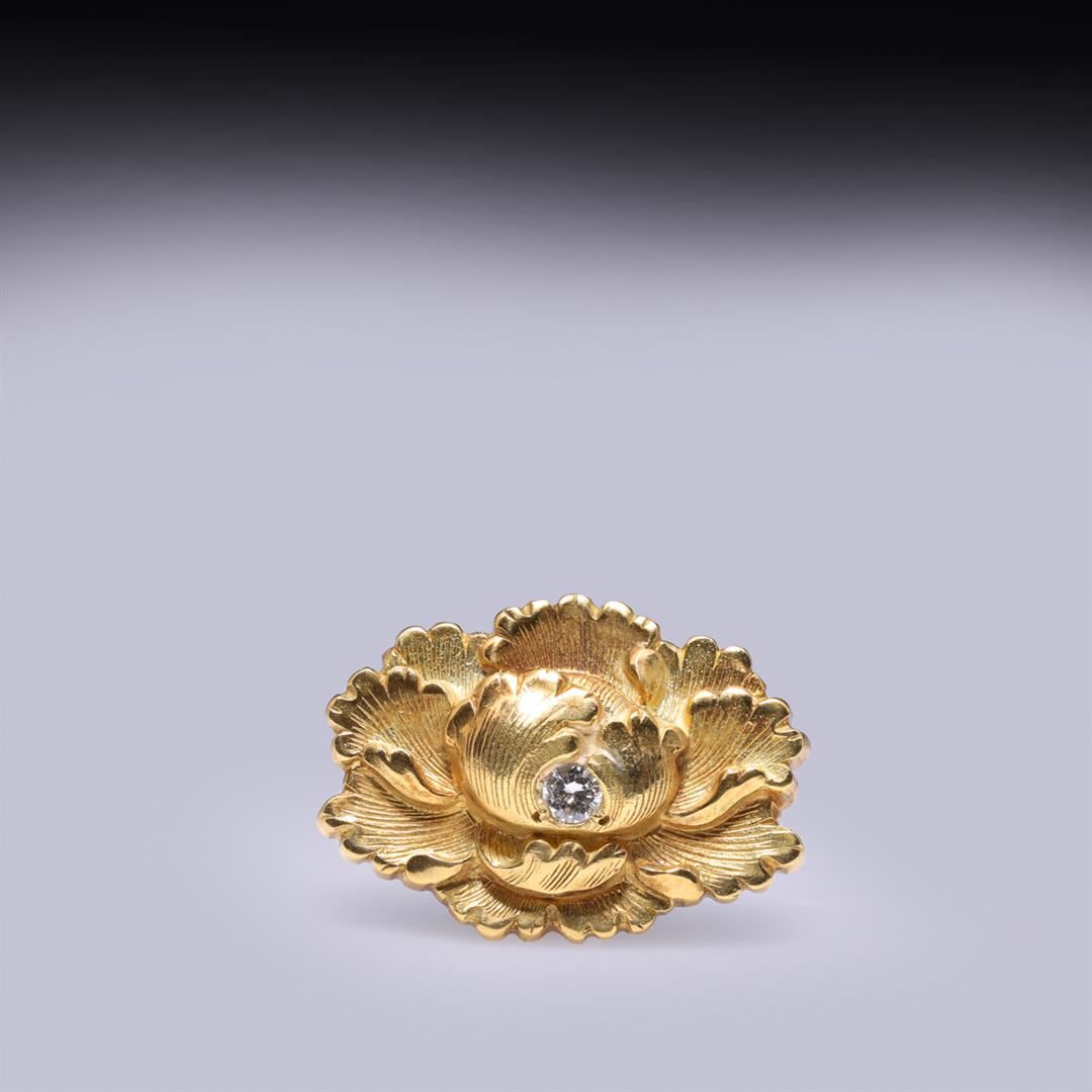 Pair of 18K Yellow Gold & Diamond Chrysanthemum Earrings by R.L. Kay containing two round cut brilliant diamonds weighing approximately 0.24 cts. Total weight is 14.8 gm. Estimated retail value $3,800.