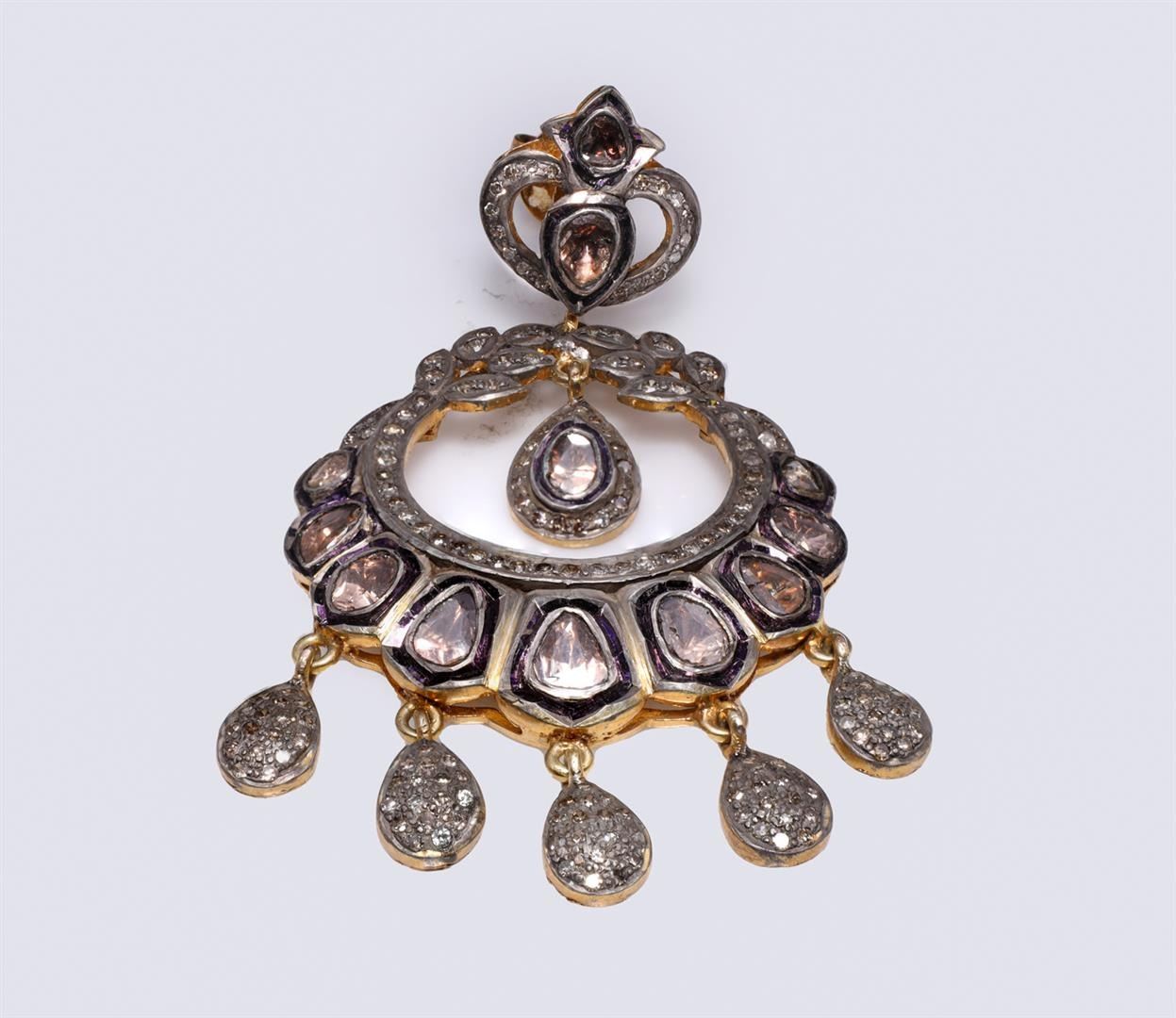 Pair of Mogul Style Silver Topped Gold & Polki Diamond Earrings containing diamonds weighing approximately 8.0 cts. Total weight is 14.7 gm. Estimated retail value $1,000.