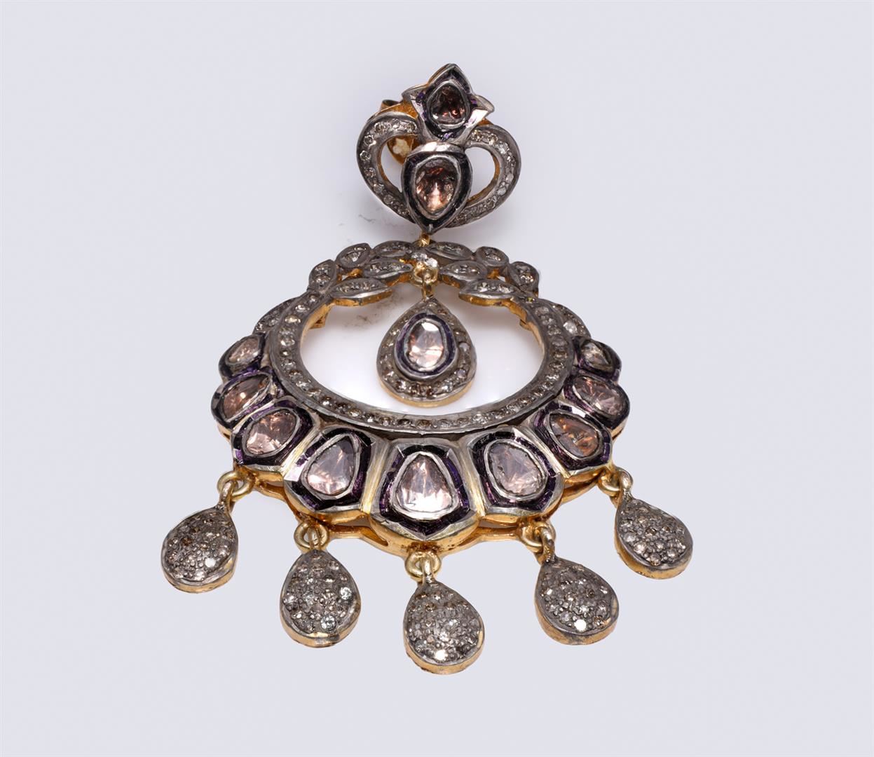 Pair of Mogul Style Silver Topped Gold & Polki Diamond Earrings containing diamonds weighing approximately 8.0 cts. Total weight is 14.7 gm. Estimated retail value $1,000.