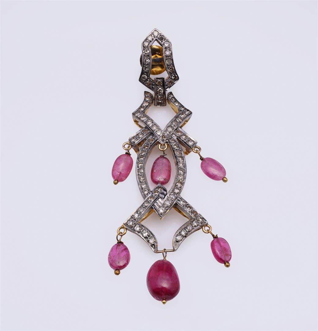 Pair of Mogul Style Silver Topped Gold Tourmaline & Diamond Earrings containing diamonds and tourmaline weighing approximately 10.0 cts. Total weight is 19.5 gm. Estimated retail value $1,000.