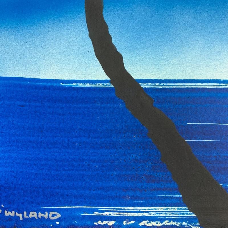"Palm Trees" is an original painting acrylic on deckle edge paper by Wyland. Hand signed by the artist, the piece comes custom framed and with a letter of authenticity. Measures approximately 26.5" x 14.5" (framed), 22.5" x 10.5" (image). This item requir
