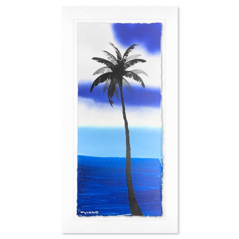 "Palm Trees" is an original painting acrylic on deckle edge paper by Wyland. Hand signed by the artist, the piece comes custom framed and with a letter of authenticity. Measures approximately 26.5" x 14.5" (framed), 22.5" x 10.5" (image). This item requires special handling and may have a longer than usual turnaround