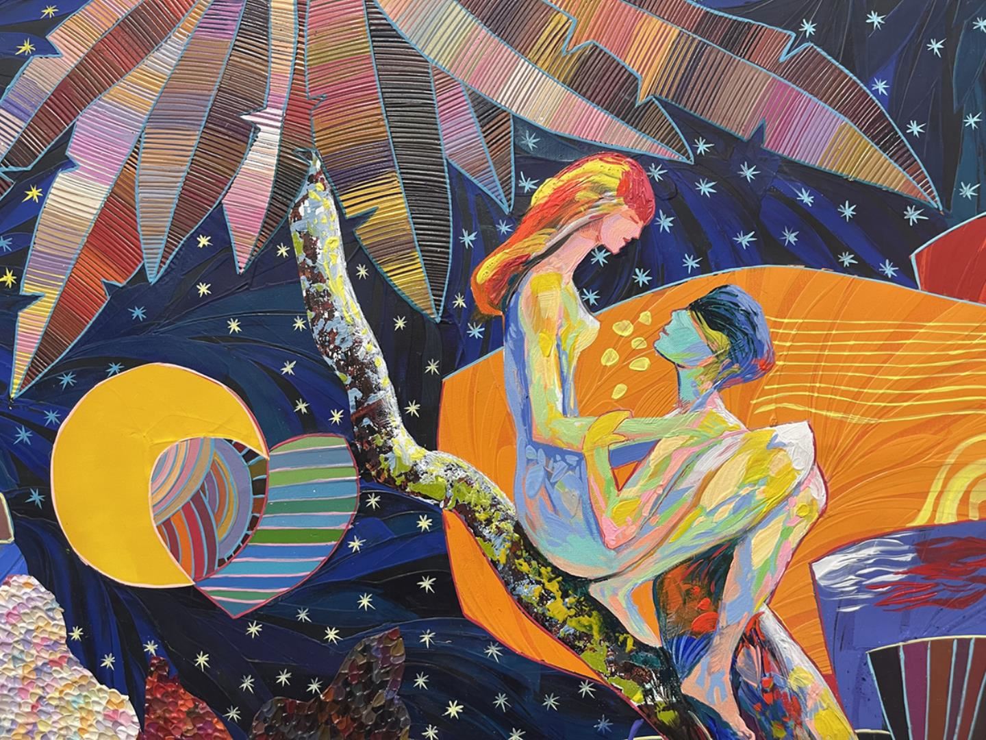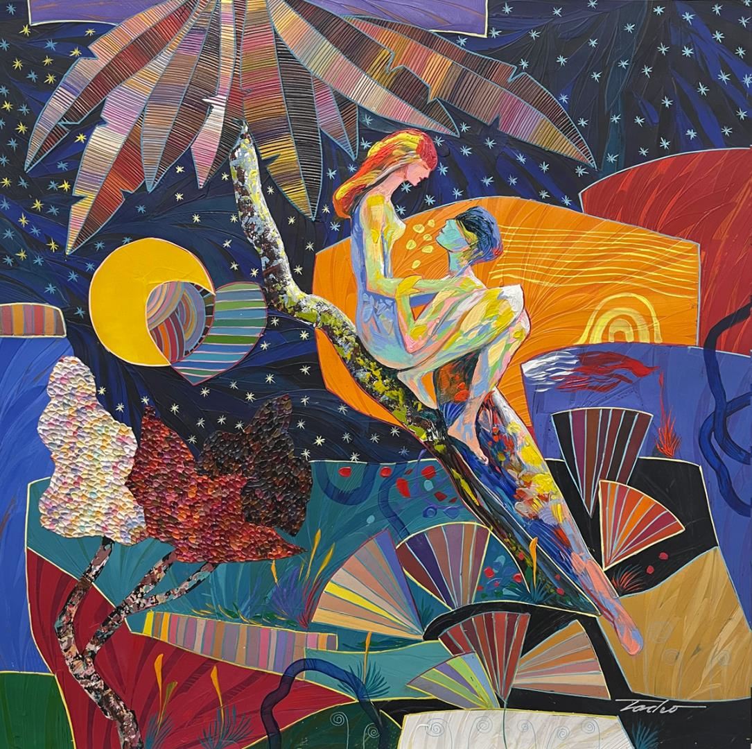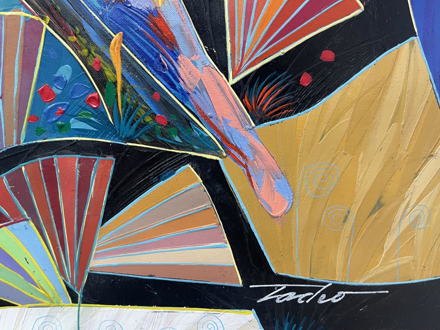 Remarkable original acrylic on 27x27" canvas signed by artist; comes with a certificate of authenticity. This Artwork comes stretched.