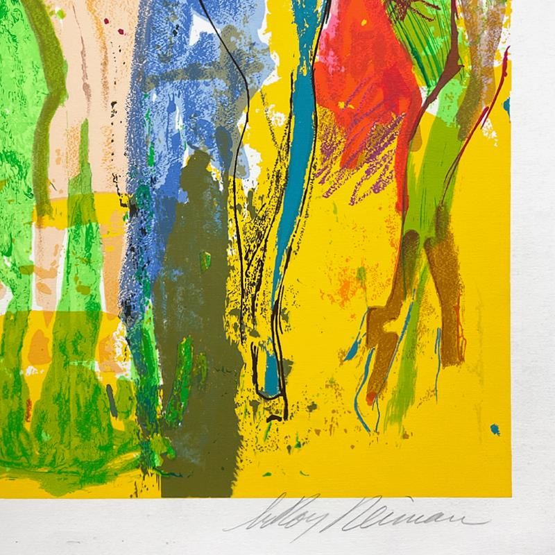 "Panteras" is a limited edition serigraph on paper by LeRoy Neiman (1921-2012), numbered 223/500 and hand signed by the artist. Includes Letter of Authenticity. Measures approx. 42" x 30" (border), 36.5" x 24" (image). Due to the age of this piece there are minor creases in the white border area that will be concealed when the piece is framed.