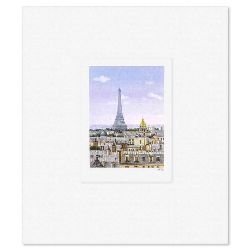 "Paris Daybreak" is a limited edition lithograph on paper by Liudmila Kondakova, hand signed by the artist. Includes Letter of Authenticity. Measures approx. 7" x 6" (border), 3" x 2" (image).
