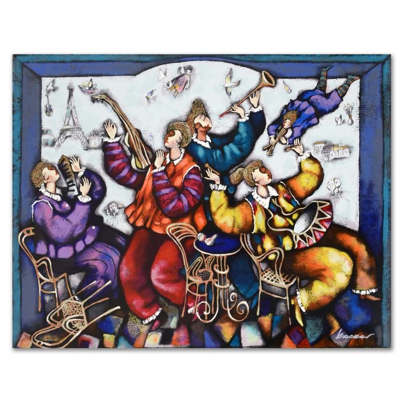 "Paris Festival" is a limited edition serigraph on deckle edge paper, numbered and hand signed by Michael Kachan. Includes Certificate of Authenticity! Measures approx. 36" x 27.5" (no border).