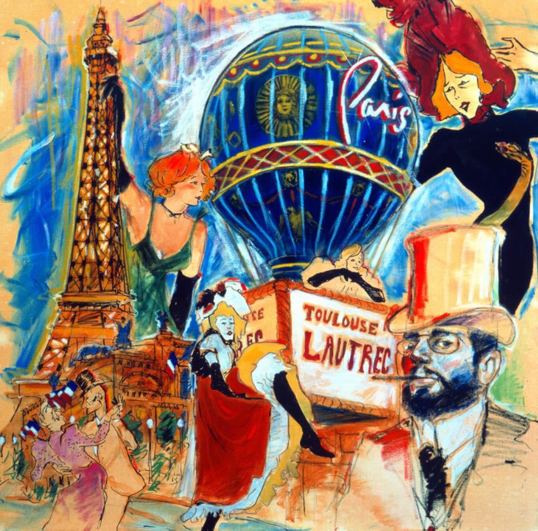 Late 19th Century Paris is the subject of this fun-loving 36x36" unique 1/1 giclee on canvas by Michael Bryan. With COA from artist.