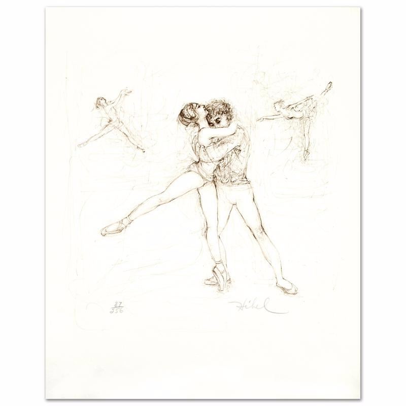 "Pas de Deux" is a limited edition lithograph on paper, numbered and hand signed by Edna Hibel (1917-2014). Includes Certificate of Authenticity! Measures approx. 12.5" x 15.5" (with border), 11" x 11" (image).
