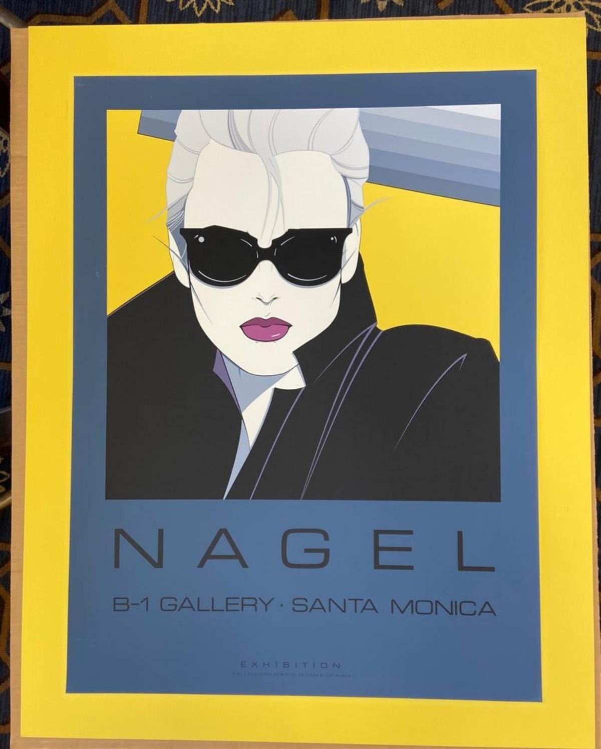 Patrick Nagel's unsigned serigraph C5, 31.5x23.5" matted to 38x30" on yellow.