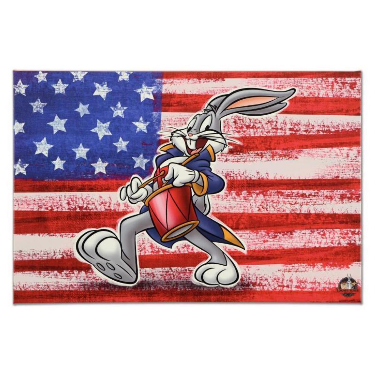 Patriotic Series: Bugs Bunny by Looney Tunes. "Patriotic Series: Bugs Bunny" is a limited edition giclee on gallery wrapped canvas by Looney Tunes. This piece comes from an edition of 250 and bears an imprint of Looney Tunes' official seal. Includes Certificate of Authenticity. Measures approx. 30" x 20" (image) This item requires special handling and may have a longer than usual turnaround.