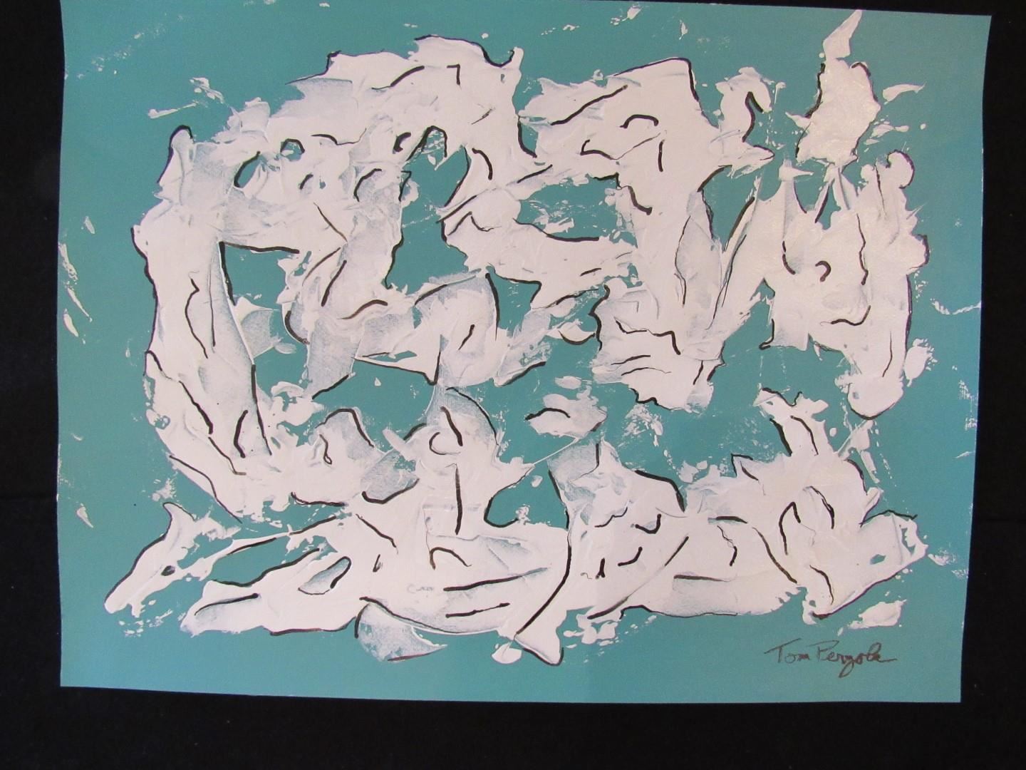 A colorful abstract acrylic painting by California artist Tom Pergola. 18x24" on irregular acid-free art paper, with COA.