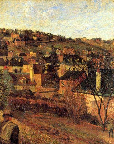 Artist: Paul Gauguin - Title: Blue Roots at Rouen - Medium: Fine Art Reproduction Giclee on Canvas - Image Size: Approximately 20 inches x 15.75 inches - Unframed on Unstretched Canvas - Biography: French post-impressionist artist Paul Gauguin was an important figure in the Symbolist art movement of the early 1900's. His use of bold colors, exaggerated body proportions and stark contrasts in his paintings set him apart from his contemporaries, helping pave the way for the Primitivism art movement. Gauguin often sought exotic environments and spent time living and painting in Tahiti.