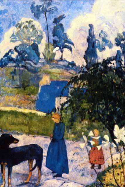 Artist: Paul Gauguin - Title: Passage de Bretagne - Medium: Fine Art Reproduction Giclee on Canvas - Image Size: Approximately 20 inches x 13.25 inches - Unframed on Unstretched Canvas - Biography: French post-impressionist artist Paul Gauguin was an important figure in the Symbolist art movement of the early 1900's. His use of bold colors, exaggerated body proportions and stark contrasts in his paintings set him apart from his contemporaries, helping pave the way for the Primitivism art movement. Gauguin often sought exotic environments and spent time living and painting in Tahiti.