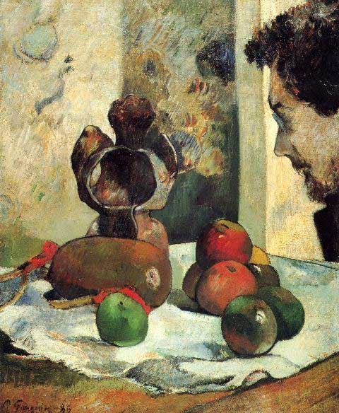Artist: Paul Gauguin - Title: Still Life with Profile of Charles Lavall - Medium: Fine Art Reproduction Giclee on Canvas - Image Size: Approximately 20 inches x 16.5 inches - Unframed on Unstretched Canvas - Biography: French post-impressionist artist Paul Gauguin was an important figure in the Symbolist art movement of the early 1900's. His use of bold colors, exaggerated body proportions and stark contrasts in his paintings set him apart from his contemporaries, helping pave the way for the Primitivism art movement. Gauguin often sought exotic environments and spent time living and painting in Tahiti.