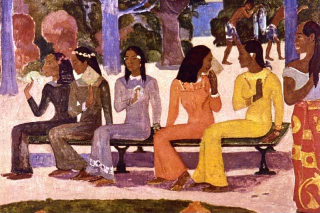 Artist: Paul Gauguin - Title: The Market - Medium: Fine Art Reproduction Giclee on Canvas - Image Size: Approximately 13.25 inches x 20 inches - Unframed on Unstretched Canvas - Biography: French post-impressionist artist Paul Gauguin was an important figure in the Symbolist art movement of the early 1900's. His use of bold colors, exaggerated body proportions and stark contrasts in his paintings set him apart from his contemporaries, helping pave the way for the Primitivism art movement. Gauguin often sought exotic environments and spent time living and painting in Tahiti.