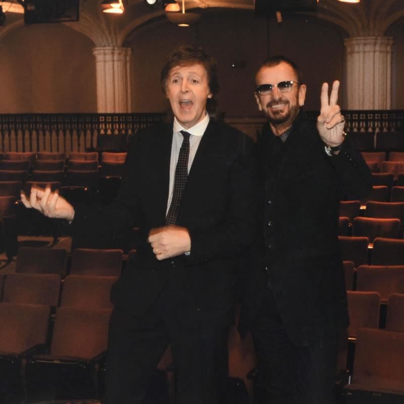 Paul McCartney & Ringo Starr by Shanahan, Rob. "Paul McCartney & Ringo Starr" is a limited edition giclee on paper, numbered and hand signed by acclaimed music industry photographer Rob Shanahan. Includes Certificate of Authenticity. Measures approximately 22" x 14.5" (image).