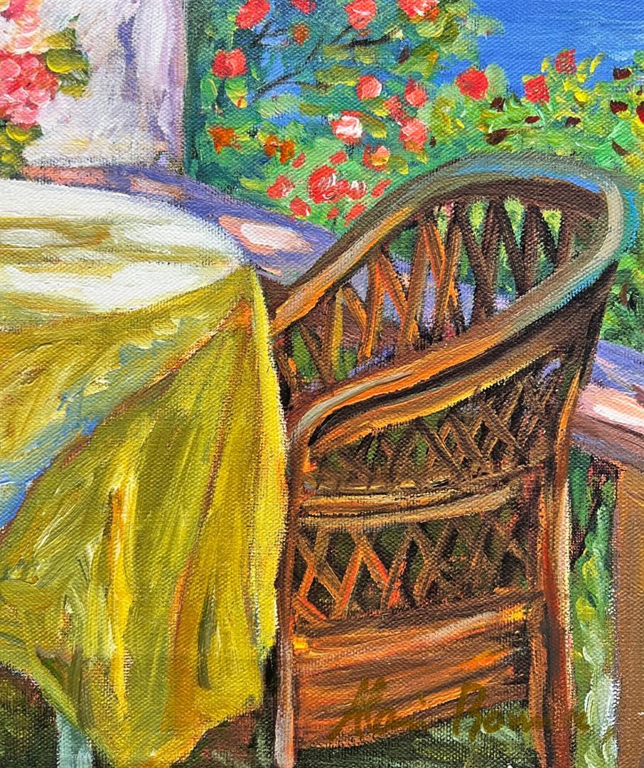 Peaceful Garden by Bonnec, Alain. Limited Hand Signed Embellished Giclee on Canvas Stretched. Dimensions: 21.5 x 18. Excellent Condition.