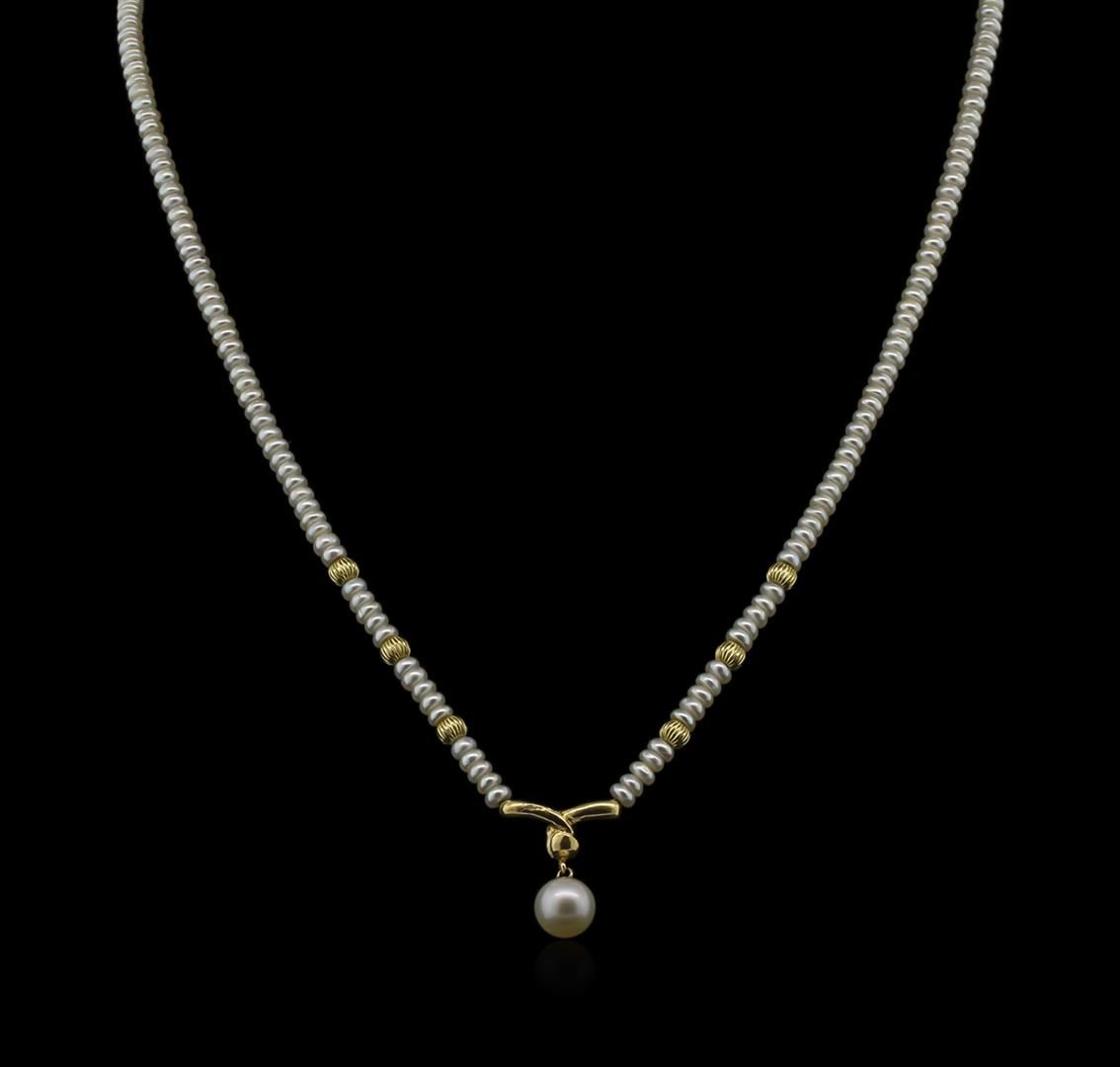 One necklace featuring: 14KT yellow gold weighing 9.80 grams containing one pearl.
