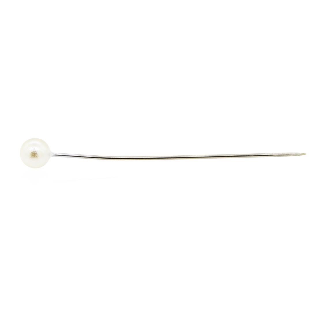 One stick pin featuring: 10KT white gold weighing 0.5 grams containing one faux pearl.