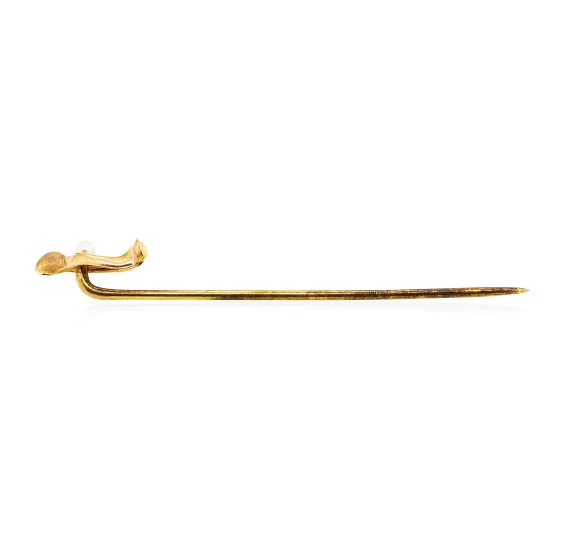 One wishbone stick pin featuring: 10KT yellow gold weighing 0.9 grams containing one seed pearl.