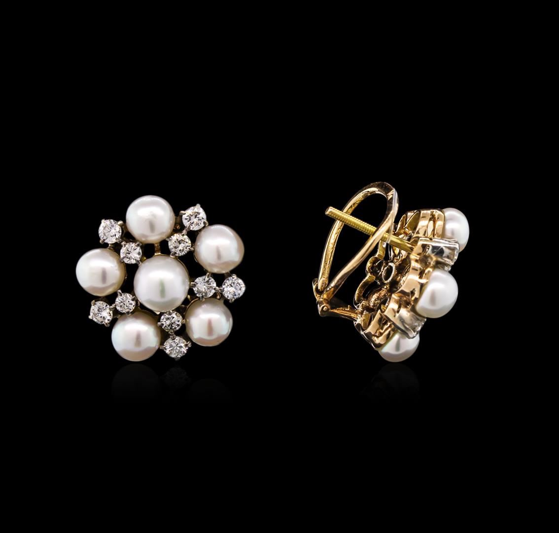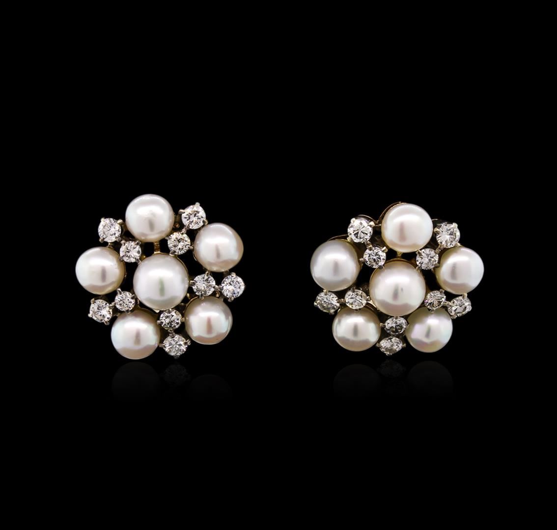 One pair of earrings featuring: 14KT rose gold weighing 9.20 grams containing 12 pearls and diamonds with a total diamond weight of 0.50ct.