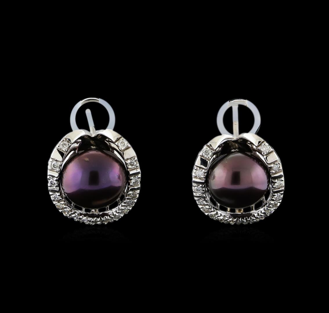 One Earrings featuring: 14KT White Gold weighing 4.93 grams containing two Pearls and Diamonds with a total diamond weight of 0.26ct.