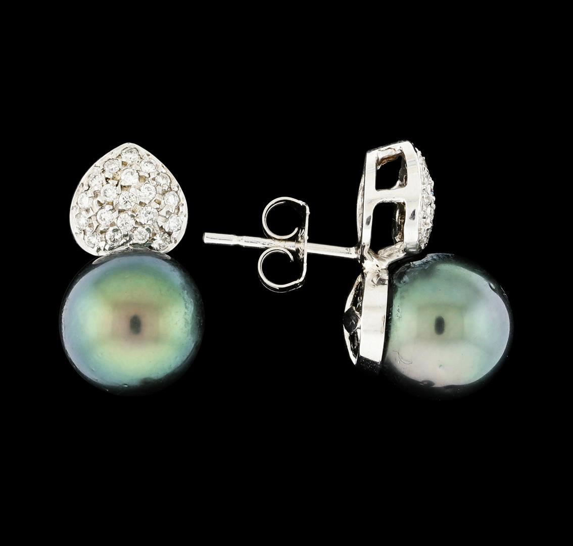 One pair of earrings : 14KT white gold weighing 2.67gm containing pearl and diamonds with a total weight of 0.3ctw.