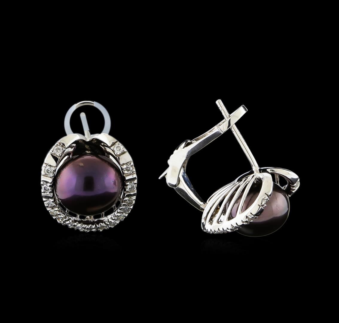One Earrings featuring: 14KT White Gold weighing 4.93 grams containing two Pearls and Diamonds with a total diamond weight of 0.26ct.