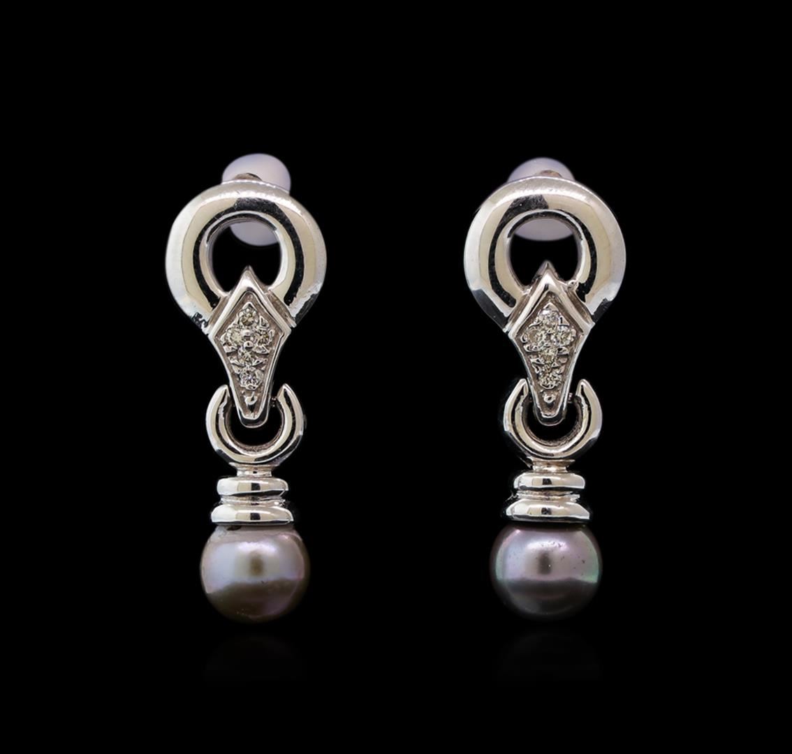 One pair of earrings featuring: 14KT white gold containing Pearl with a total weight of 4.75ct and diamonds with a total weight of 0.08ctw.