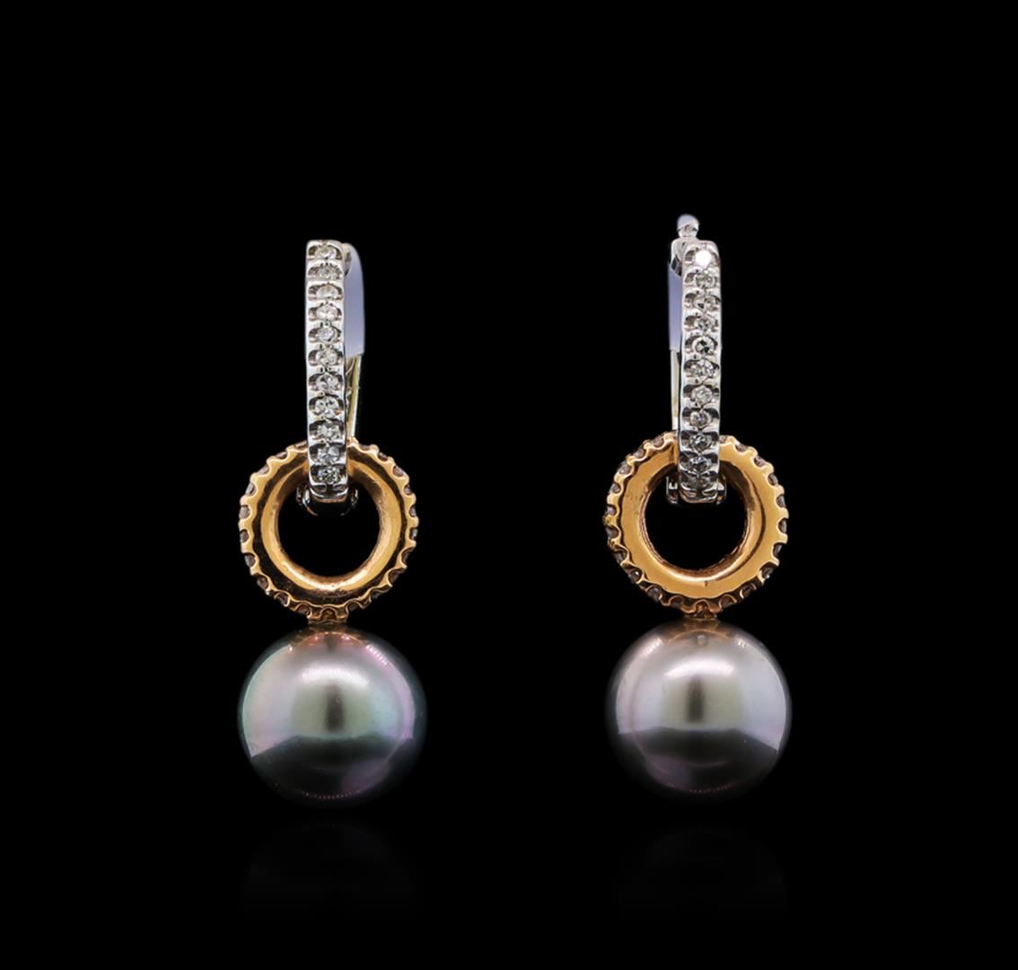 One pair of earrings featuring: 14KT white and rose gold containing 9mm Pearls and Diamonds with a total weight of 0.32ctw.