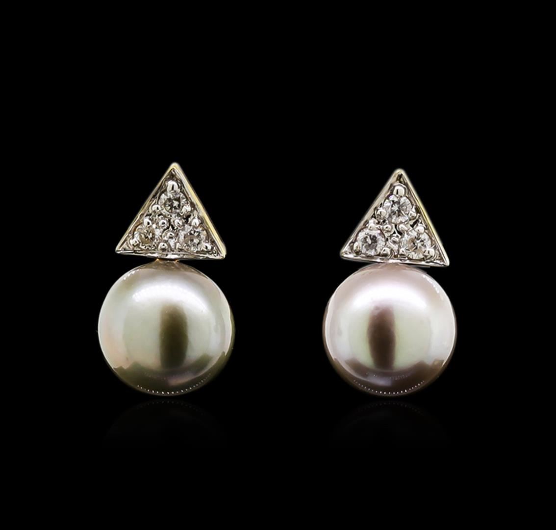 One pair of earrings featuring: 14KT yellow gold weighing 2.00 grams containing two pearls and diamonds with a total weight of 0.06ct.