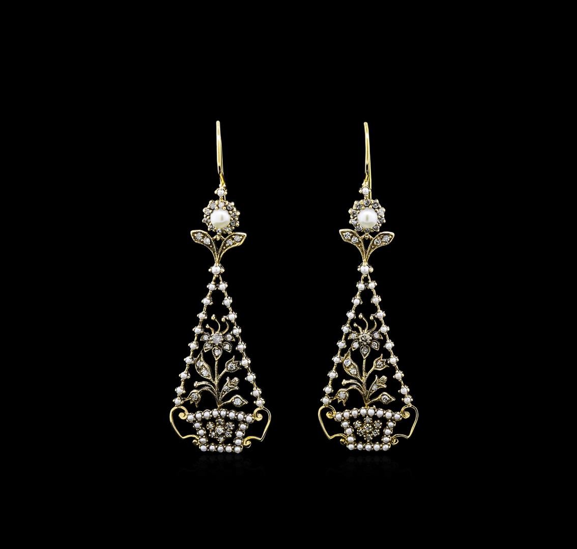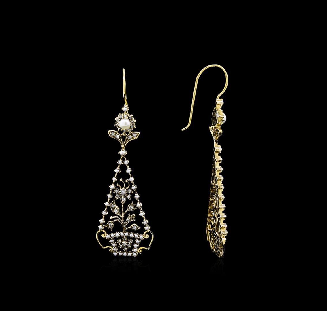 One pair of earrings featuring: 18KT yellow gold weighing 8.00 grams containing pearls and diamonds with a total weight of 0.60ct.