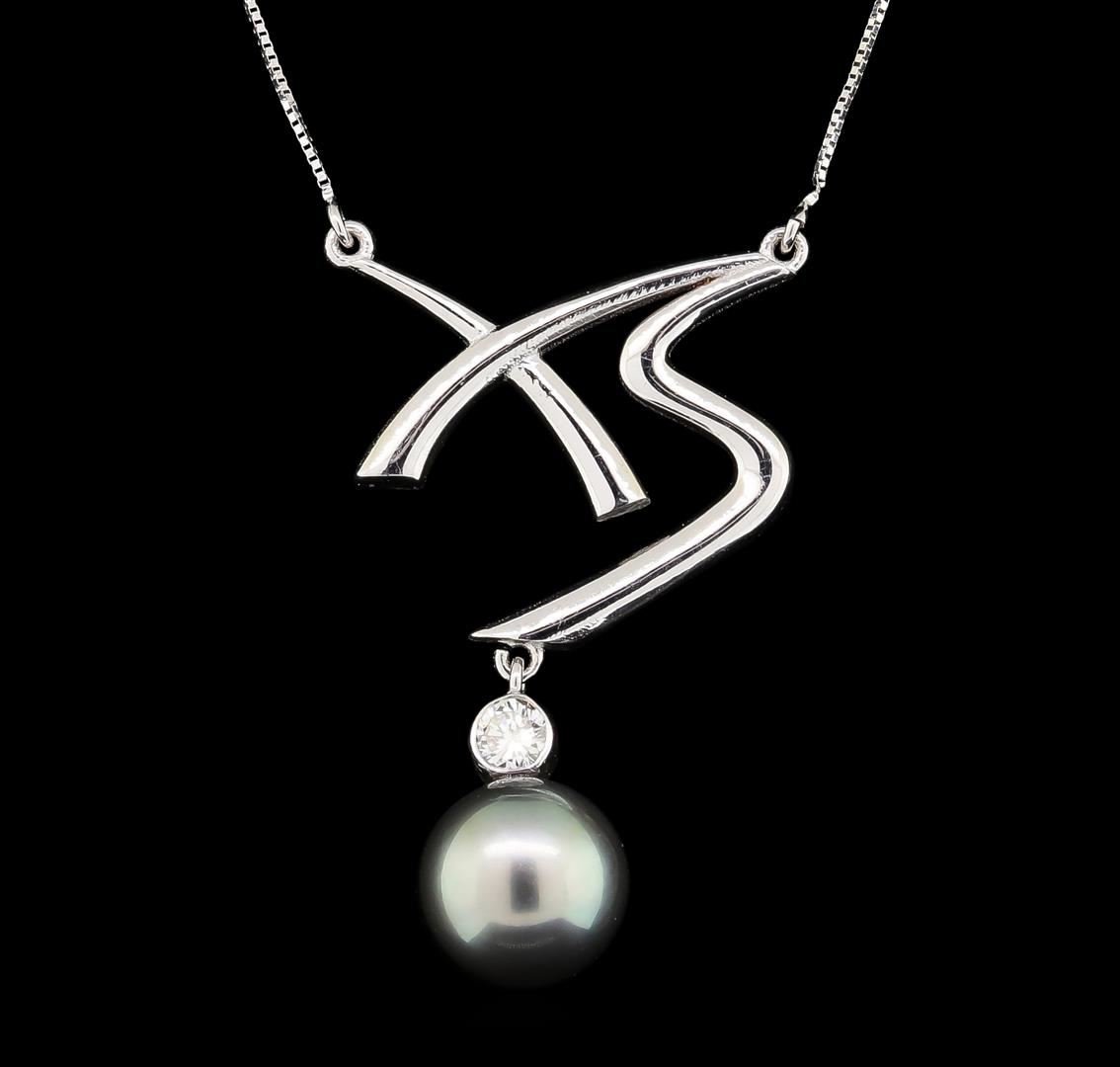 One Pendant with chain : 14KT white gold weighing 7.18gm containing diamonds with a total weight of 0.30ctw.