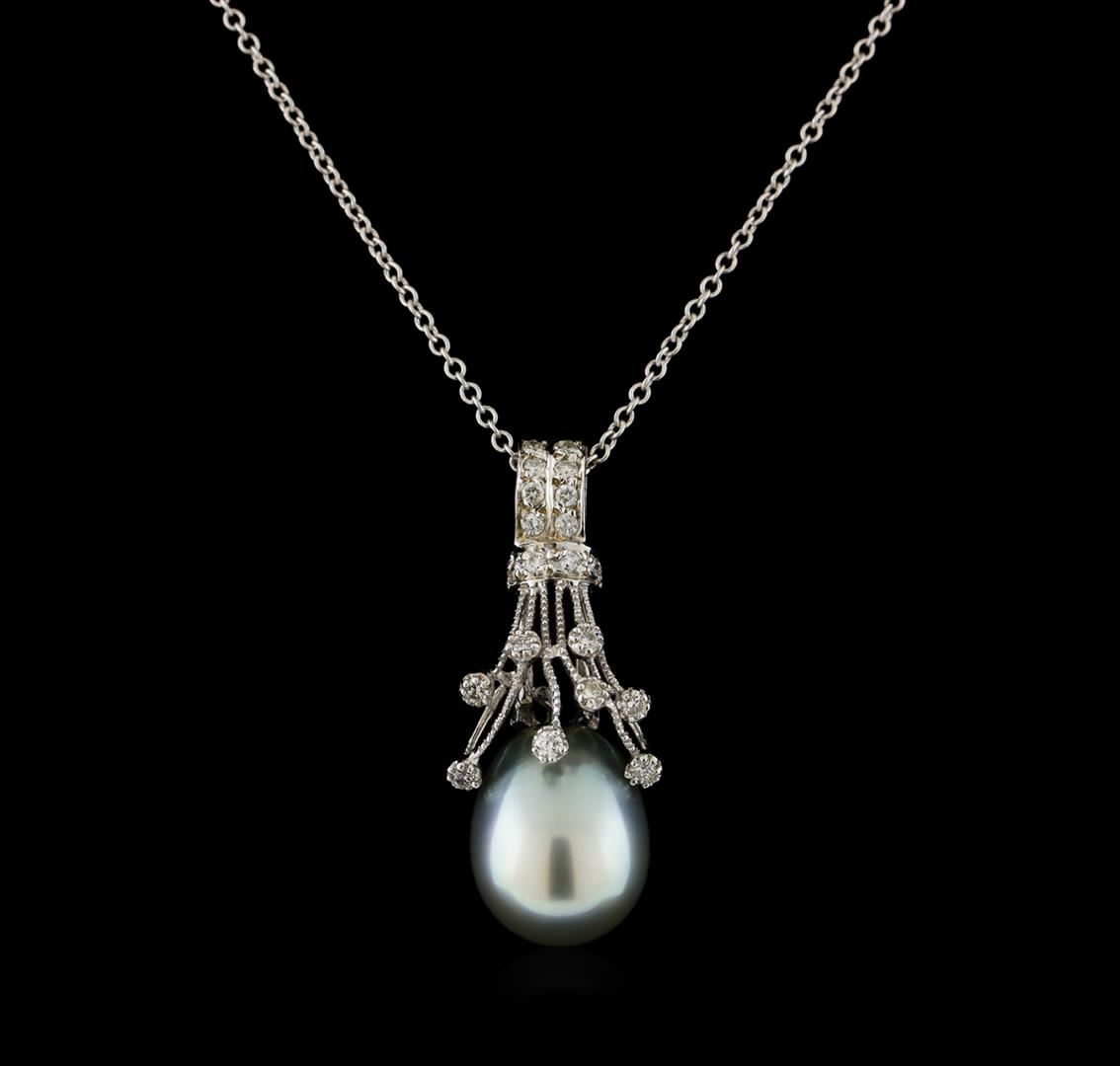One Pendant With Chain featuring: 14KT White Gold weighing 1.77 grams containing one Pearl and Diamonds with a total diamond weight of 0.22ct.