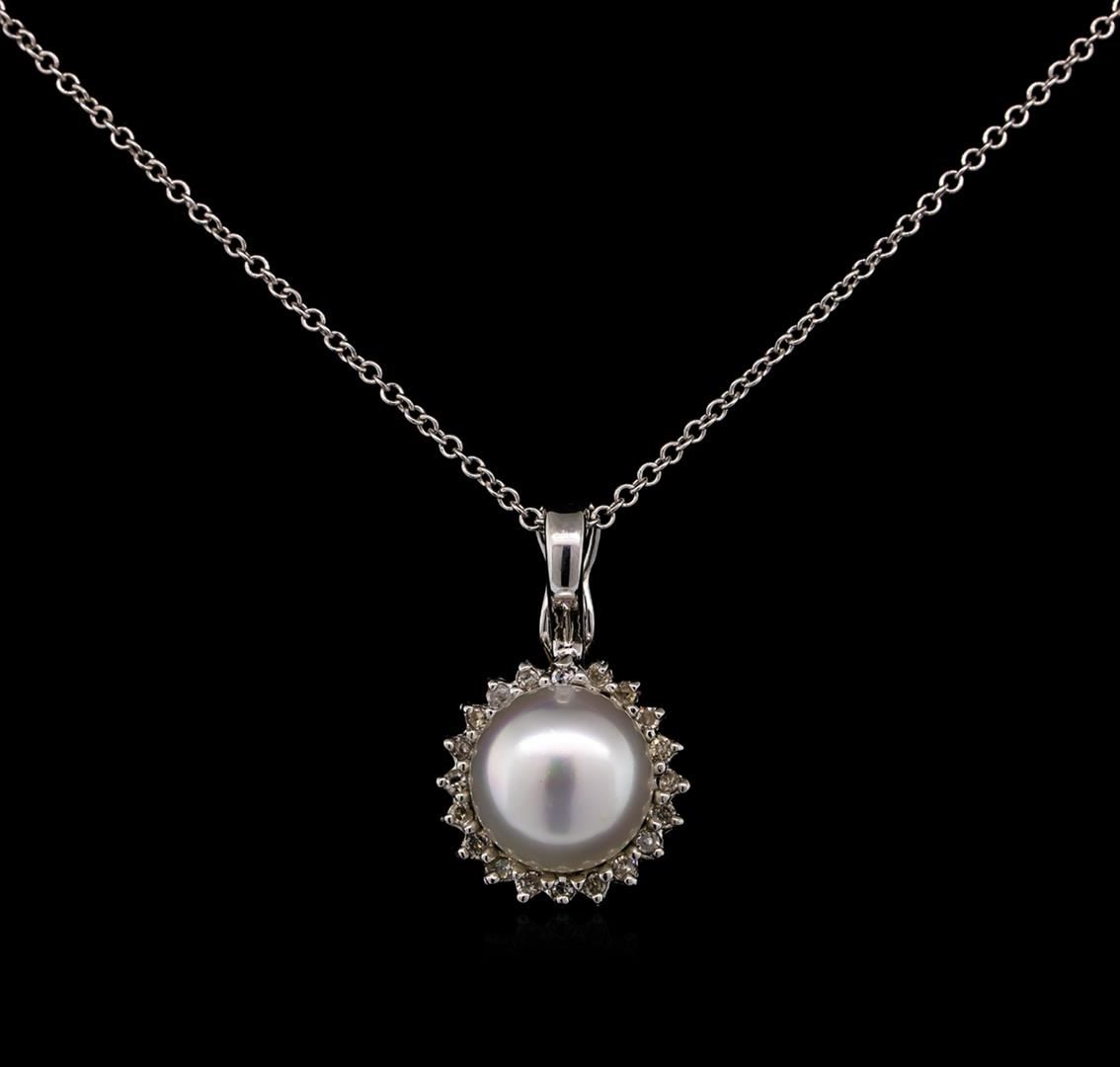 One pendant with chain featuring: 14KT white gold weighing 1.00 gram containing one pearl and side diamonds with a total weight of 0.10ct.