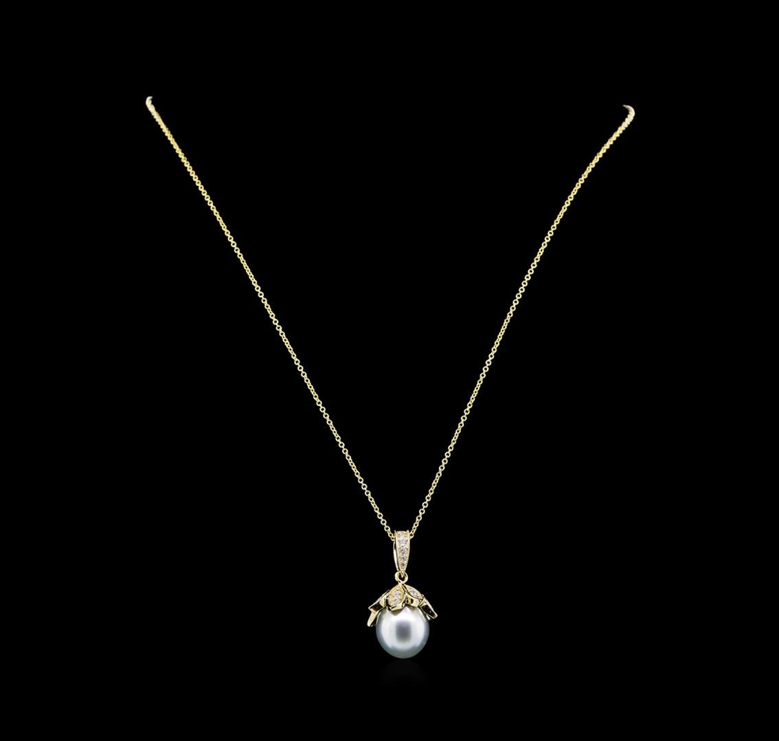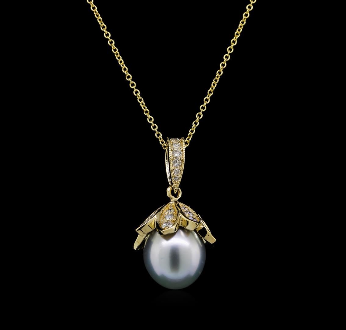 One pendant with chain featuring: 14KT yellow gold weighing 4.38 grams containing one pearl and diamonds with a total diamond weight of 0.82ctw.