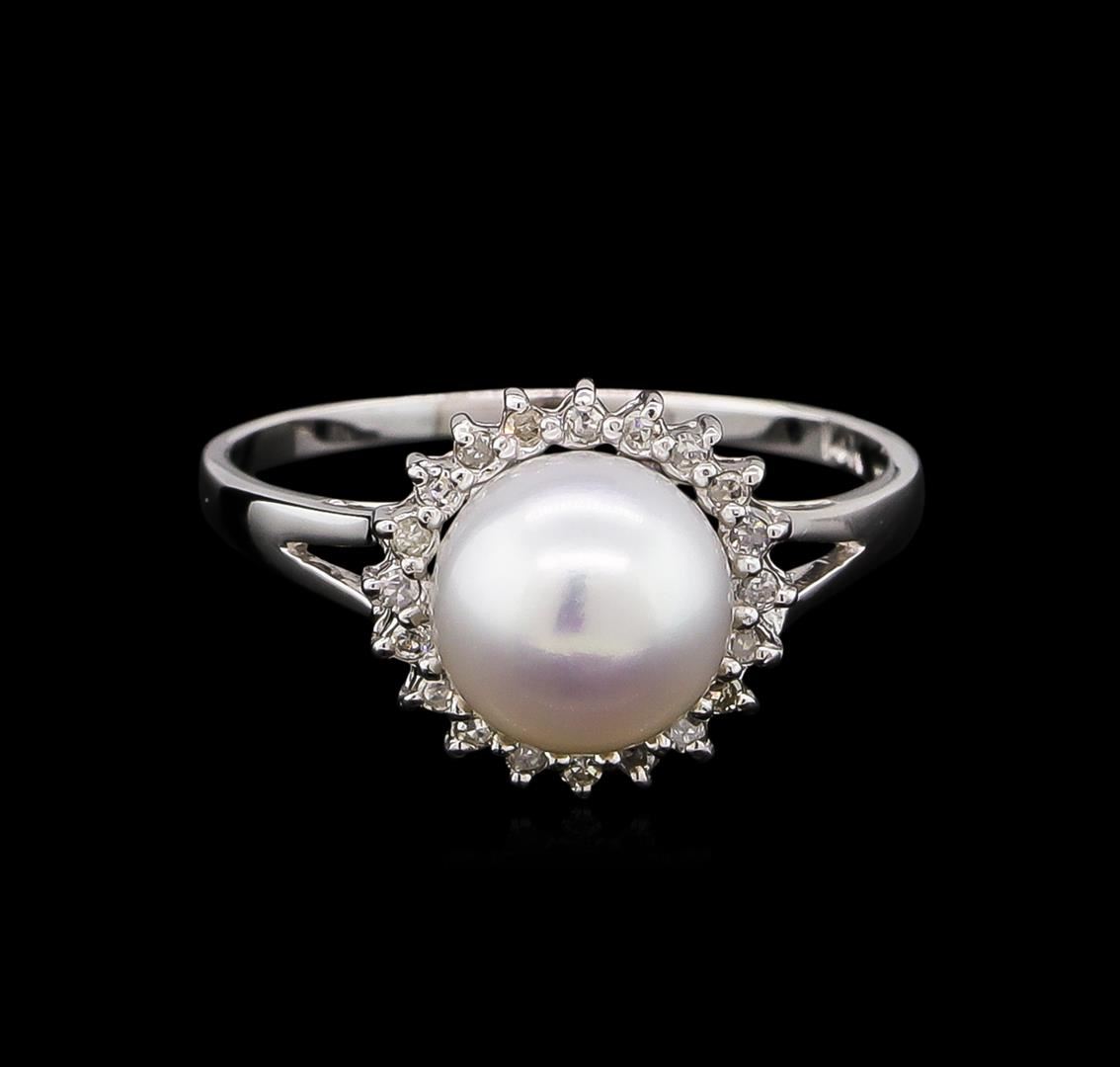 One ring featuring: 14KT white gold weighing 2.00 grams containing one pearl and side diamonds with a total weight of 0.18ct.