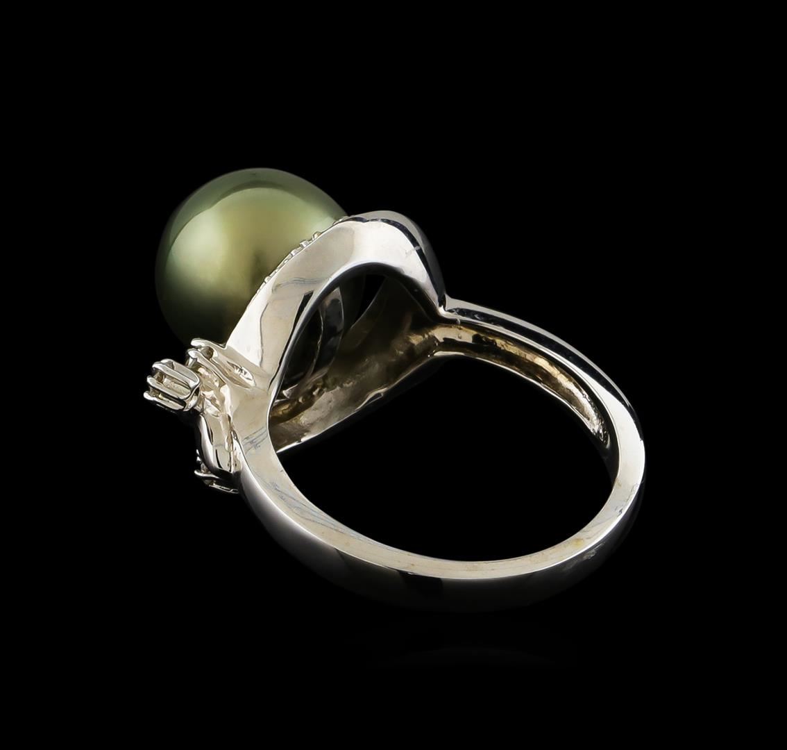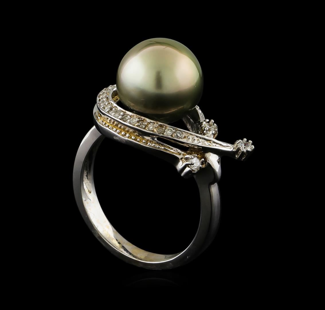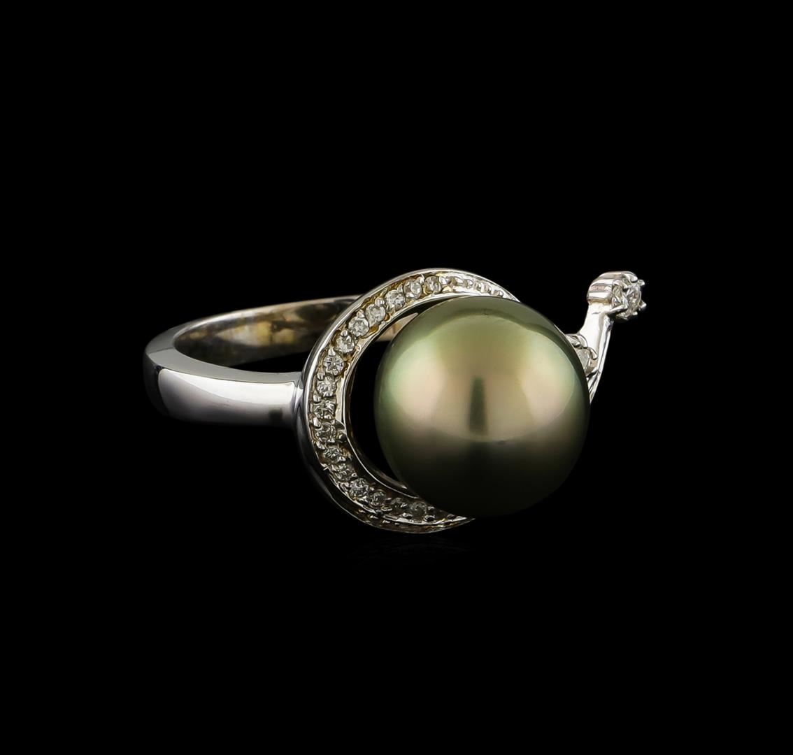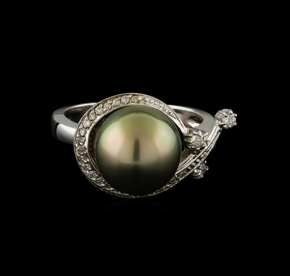 One Ring featuring: 14KT White Gold weighing 5.74 grams containing one Pearl and Diamonds with a total diamond weight of 0.23ct.